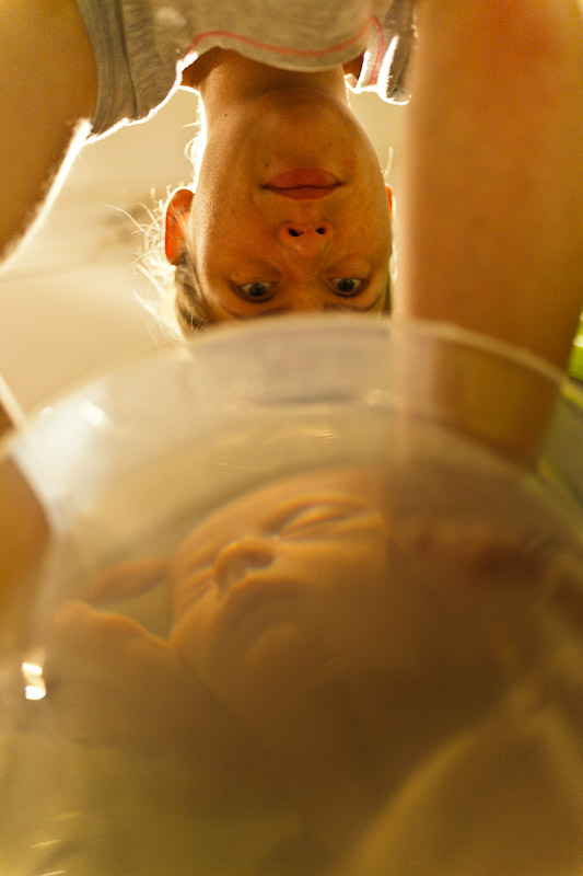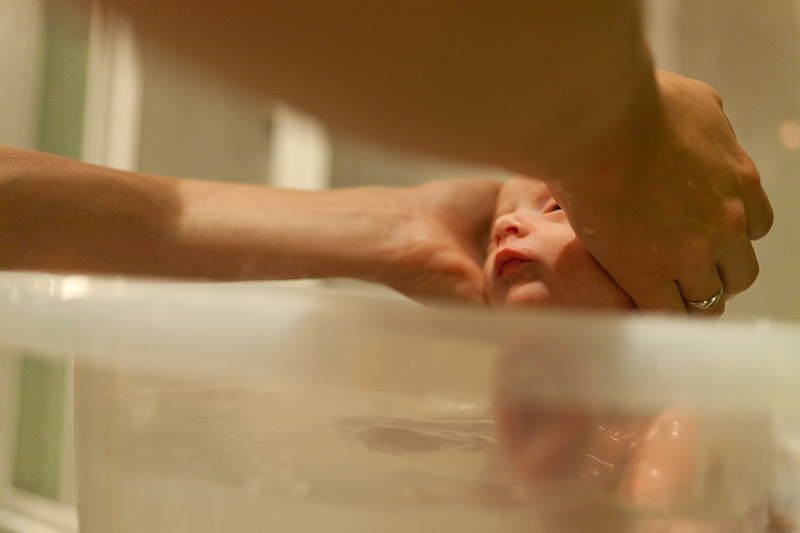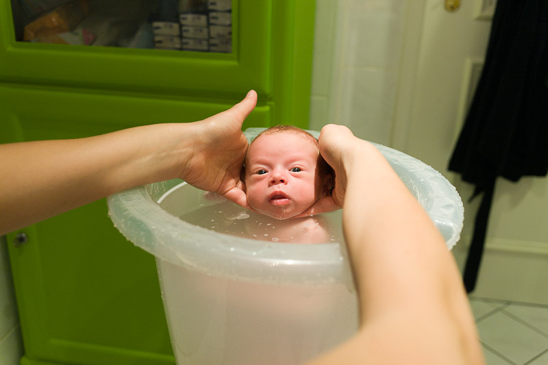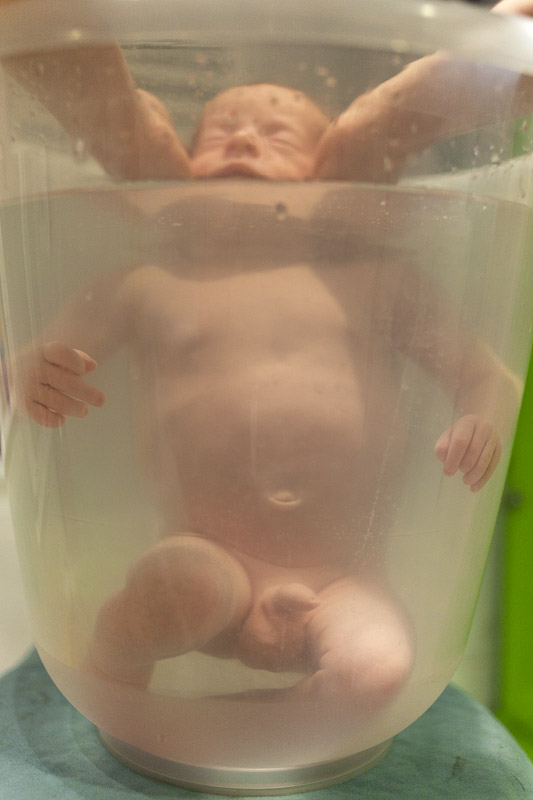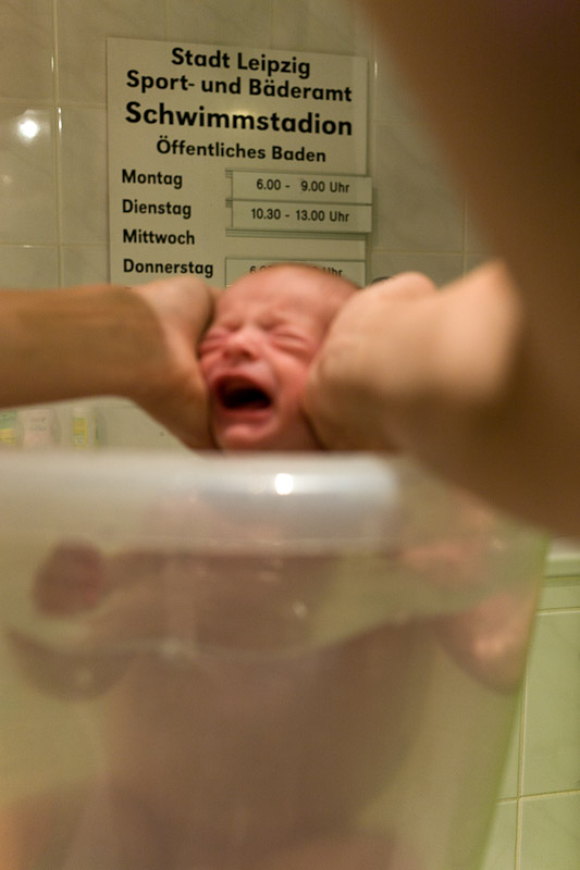 Helene wird von Hebamme Uta gebadet. Gluck, gluck!