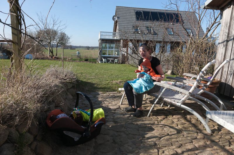 Herrlich, was Dana und Andreas, unsere Freunde und Begleiter, da ausgegraben haben: Das Landhaus Klein-Vielen. Am Ende der Welt. Ruhe, Gegacker, Gezwitscher und eine herrliche Gartenlaube ganz in Weiß.